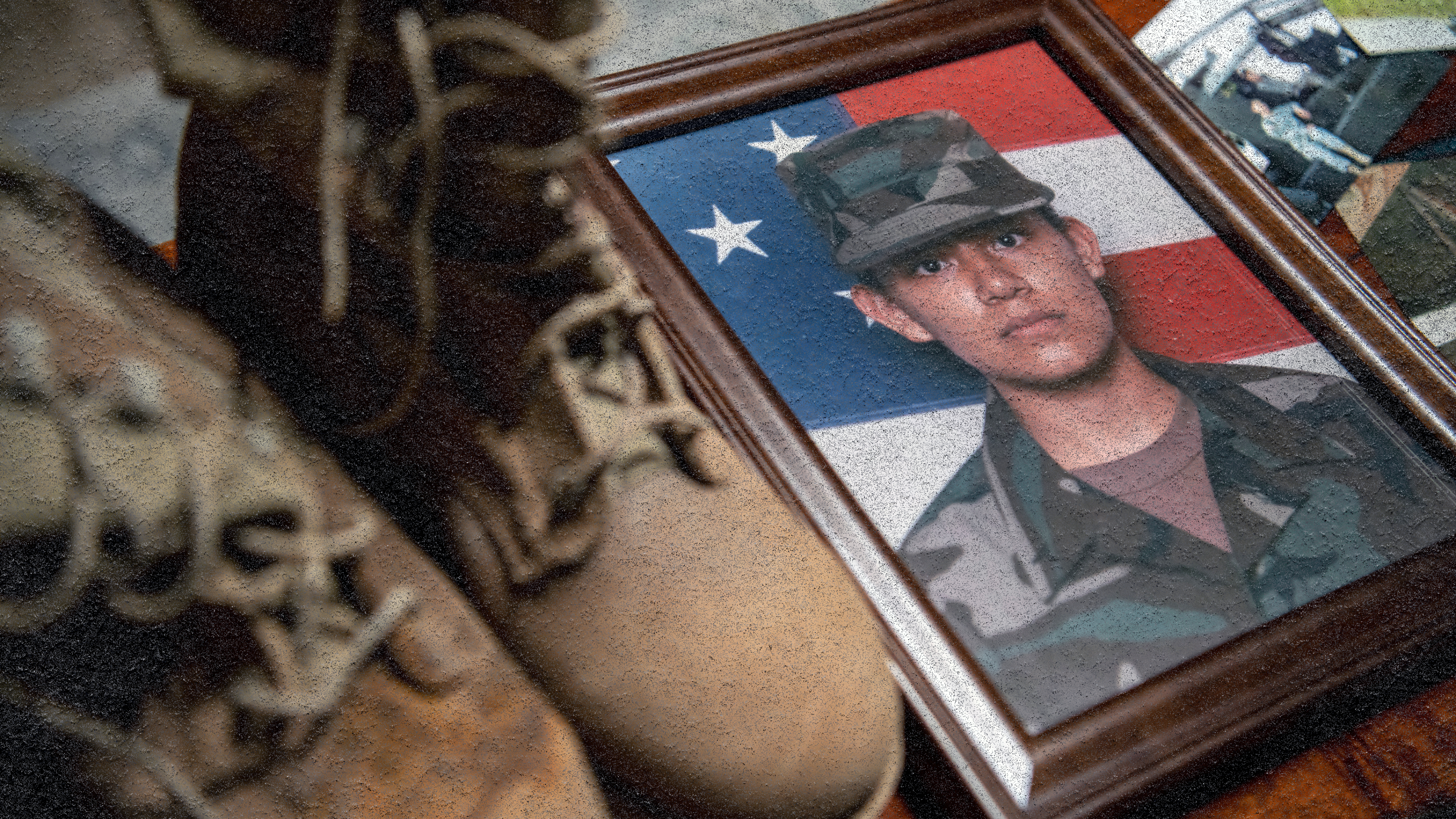 Boots and photo of a veteran